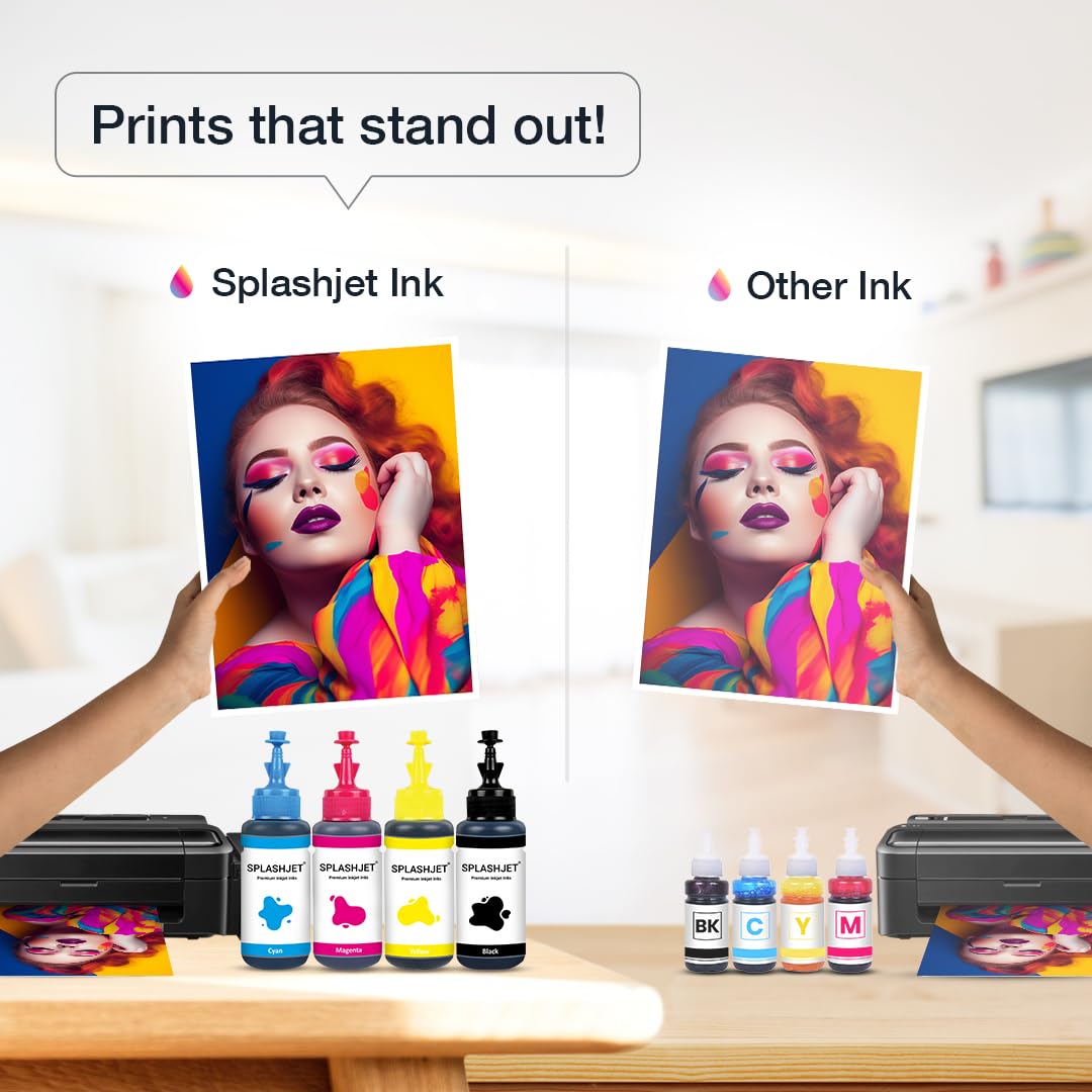 Splashjet 664 Ink is a premium refill ink set designed for Epson L130 printers, delivering sharp, vibrant prints with every use. Each bottle contains 70ml of high-density dye-based ink, engineered for smooth performance, high yield, and exceptional color accuracy. The CMYK set is perfect for everyday document printing and color photo output, offering an affordable and reliable alternative to original Epson 664 ink bottles. Compatible, efficient, and mess-free — a top choice for refill users.